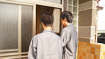 作業前はご近所様へのご挨拶と養生作業、整理後は室内のお掃除をおこないます。